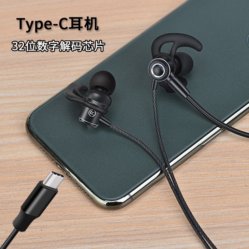 Headset type c in-ear remote control with microphone HIFI mobile phone wired electric sports game earplug for Apple/Xiaomi